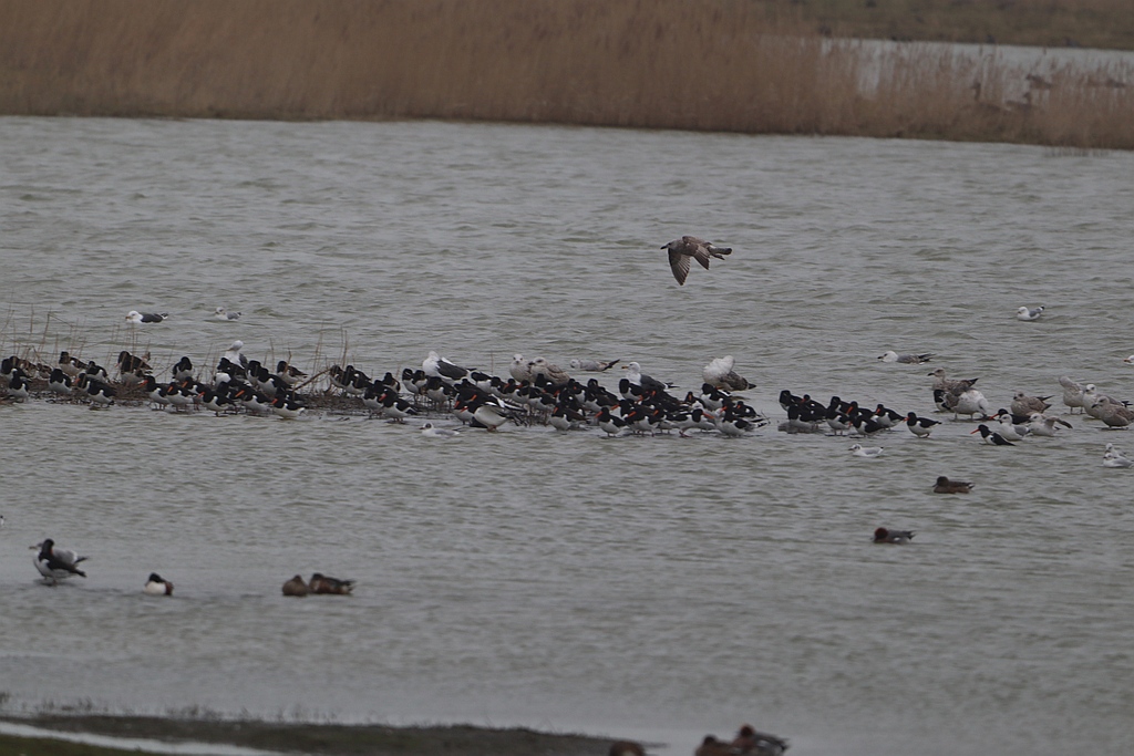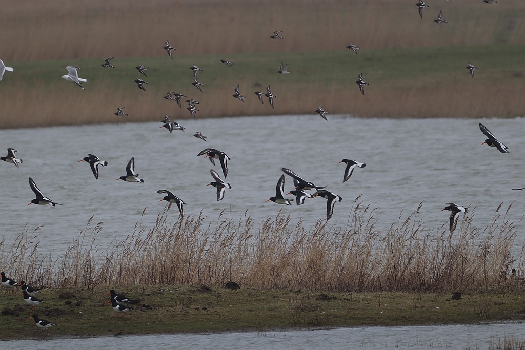 scholeksters en steenlopers in vlucht